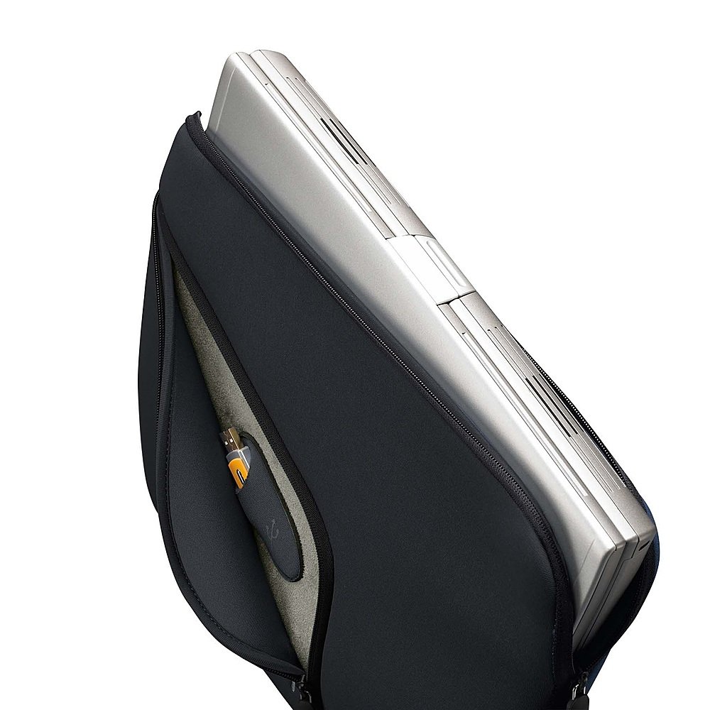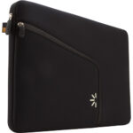 The 15″ MacBook Pro Laptop Sleeve from Case Logic is a form-fitting, cushioned way to store and travel with your laptop. The neoprene exterior is complemented by a suede lining that protects your Mac from scratches and abrasions. The sleeve features an exterior pocket with zipper that holds accessories such as a cable and power adapter. Within that pocket is another small, slip-in pocket for your USB drive. The sleeve opens via an asymmetrical zipper that runs along the top and side to provide rapid access to your laptop.
