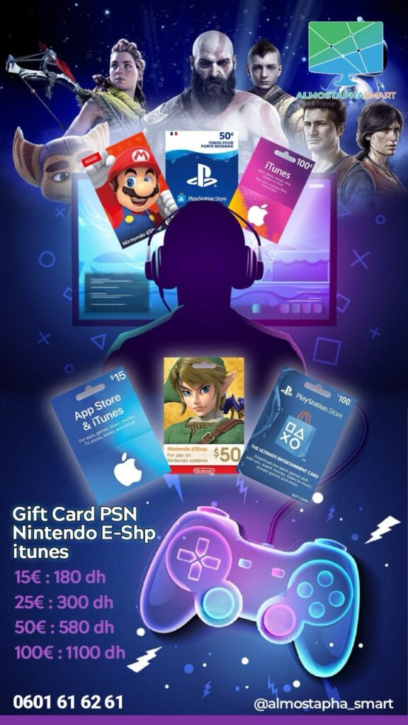 cartes prépayées gaming au Maroc 15 Euro – Nintendo E-Shop Itunes PSN | Cartes Cadeaux Prix Maroc