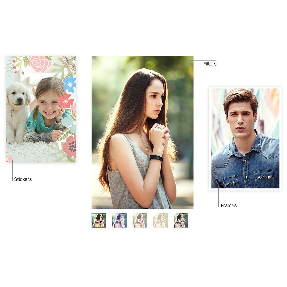 Bénéficiez d’une technologie d’impression zéro Ink (Zink) sûre et respectueuse de l’environnement avec une résolution d’image de 300 ppp pour des photos aux couleurs vives.