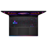 Une fois l’écran de 16 pouces déployé, le Raider GE68 HX s’illumine de mille feux du clavier jusqu’à la barre de leds disposée à l’avant. Le tout est évidemment personnalisable grâce au logiciel Steelseries GG qui permet de personnaliser les effets de lumière quasiment led par led.