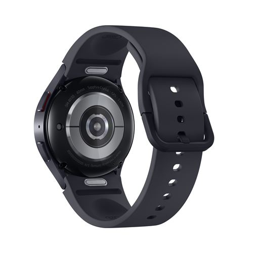Deux sœurs, si différentes extérieurement. C’est entendu, la Galaxy Watch 6 est plus compacte que sa grande sœur, la Galaxy Watch 6 Classic de Samsung. Son boîtier mesure seulement 40 mm de largeur et est agréablement discret. D’autant que Samsung n’a pas rogné sur la taille de l’écran par rapport au modèle Classic de 43 mm. Il est toujours de 1,31 pouce, ce qui fournit la certitude d’un grand confort visuel. Car la dalle Super Amoled est excellente et très lumineuse — nous avons mesuré un pic stable à 1370 cd/m². D’autant que cette petite dalle ronde est mise en avant par un design plus original, tout en légèreté (28,7 g sans le bracelet) et très plaisant à porter au poignet.